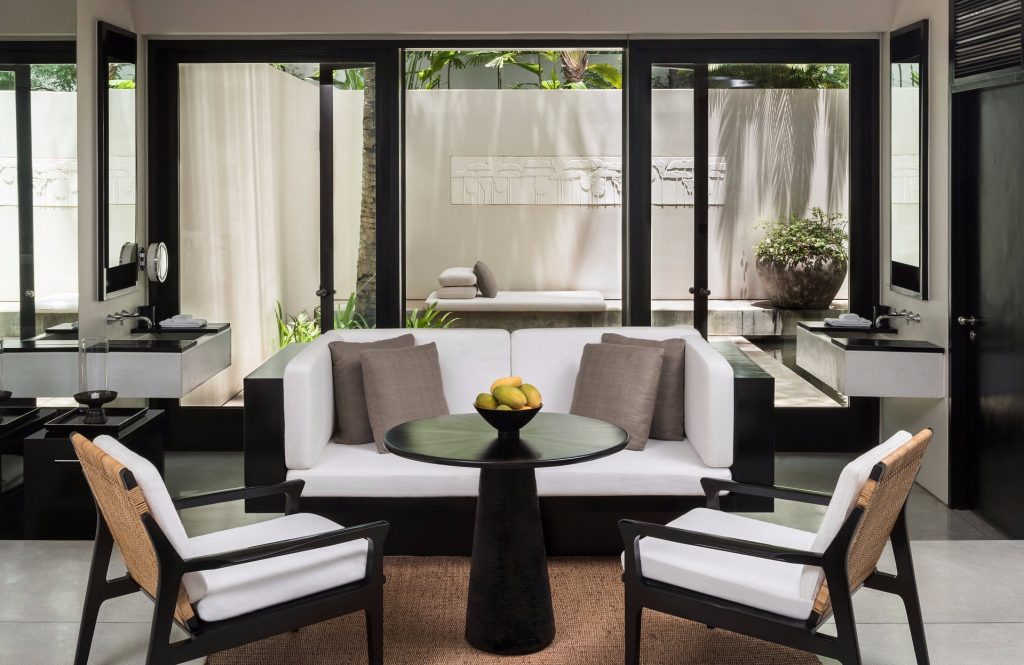 Each of Amansara’s 24 suites balances heritage and minimalism, echoing the New Khmer architectural charm of the 1960s with a calm, monochrome aesthetic. Designed for reflection and rest, these sanctuaries open onto private courtyards, some with plunge pools that glisten beneath dappled tropical light.